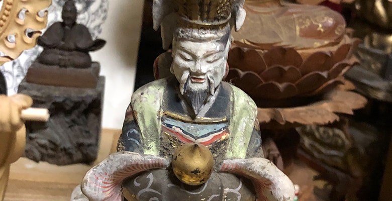 その御利益は広大で厄除け、商売繁盛、家内安全、恋愛成就などあらゆる願いを叶える象徴として手にはいろいろな御利益を表す持物を持っております。